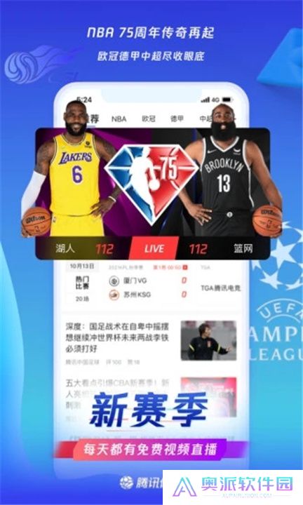 1、NBA新赛季重磅开启,每日精彩纷呈的视频直播数量至少三次,但只在腾讯体育独家呈现。