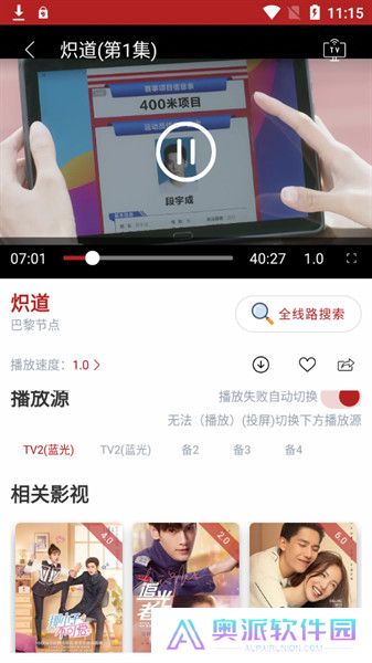 3、打开“全剧得影视app”后,点击并播放用户想要投屏的影视作品。