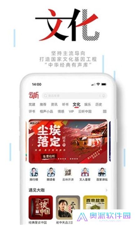 5、云听中国:根据用户当前地理位置推送当地广播频率、地方资讯和人文、历史、经济、社会等内容,构建云上“声音博物馆”。