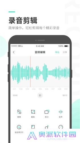 1、集成高精度语音识别,一键转换音频为文字,会议记录、采访整理更高效。