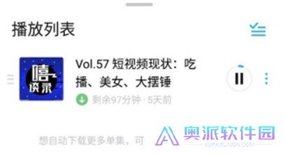 自动下载:将播客的单集添加到播放列表后,节目会自动开始下载。