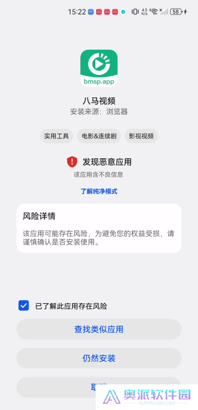 2、系统发现恶意应用,可能是误判,需要点击“了解风险”。