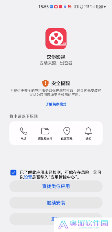 3、第三步,点击勾选“已了解此应用未经检测……”,然后再点击“继续安装”。(出现安全提醒,不用惊慌)