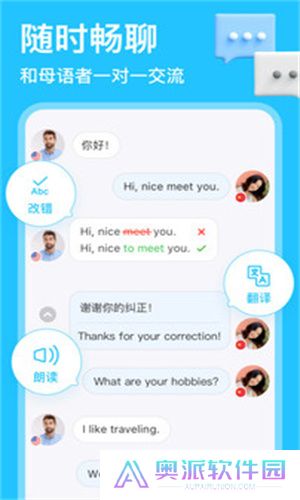 HelloTalk为学习者们提供一个专注语言文化交流学习的平台。在这里无论你是学习哪种外语,都会有将其作为母语、且在学习汉语的国外友人与你一起交流、共同学习,帮助你快速的提高自己的外语口语水平,提供最原汁原味的外语学习体验,学习外语的同时了解不同地区的文化,用最好的对话形式提升自己的外语交流水平。有需要的中小学生们快来下载HelloTalk体验吧。