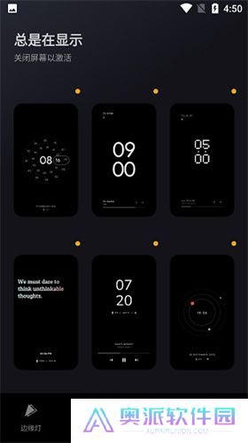 6、边缘灯设置后,用户打开AOD,用户可在该页面选择喜欢的屏幕显示方式。